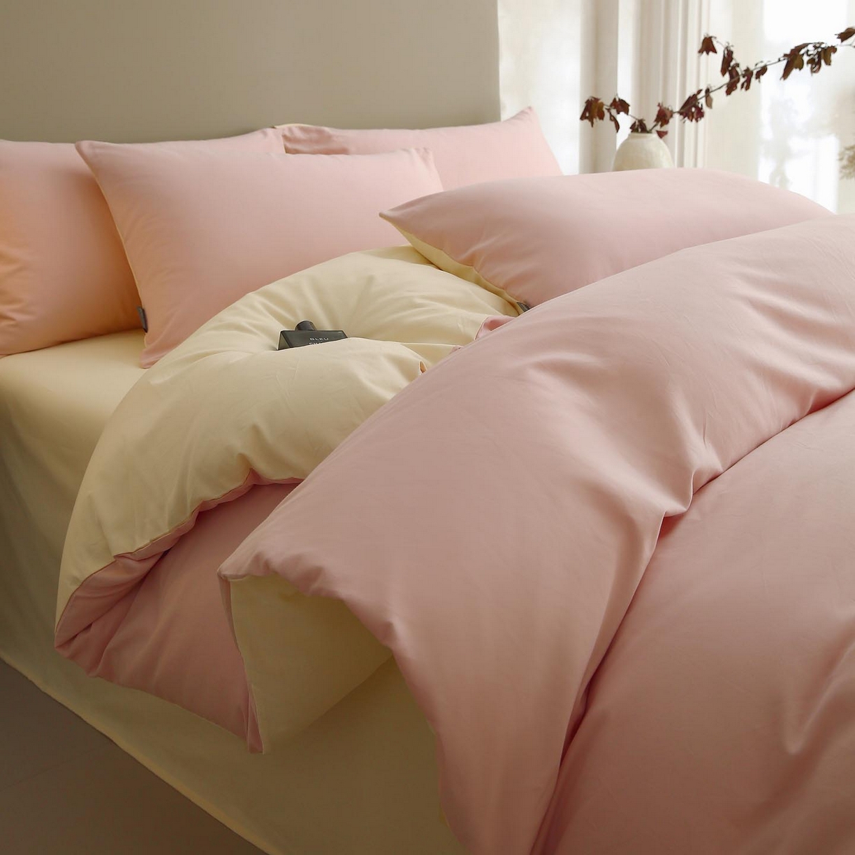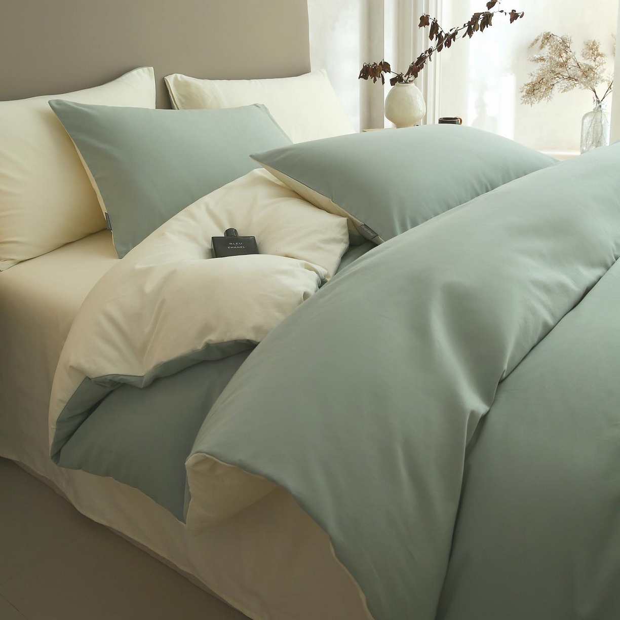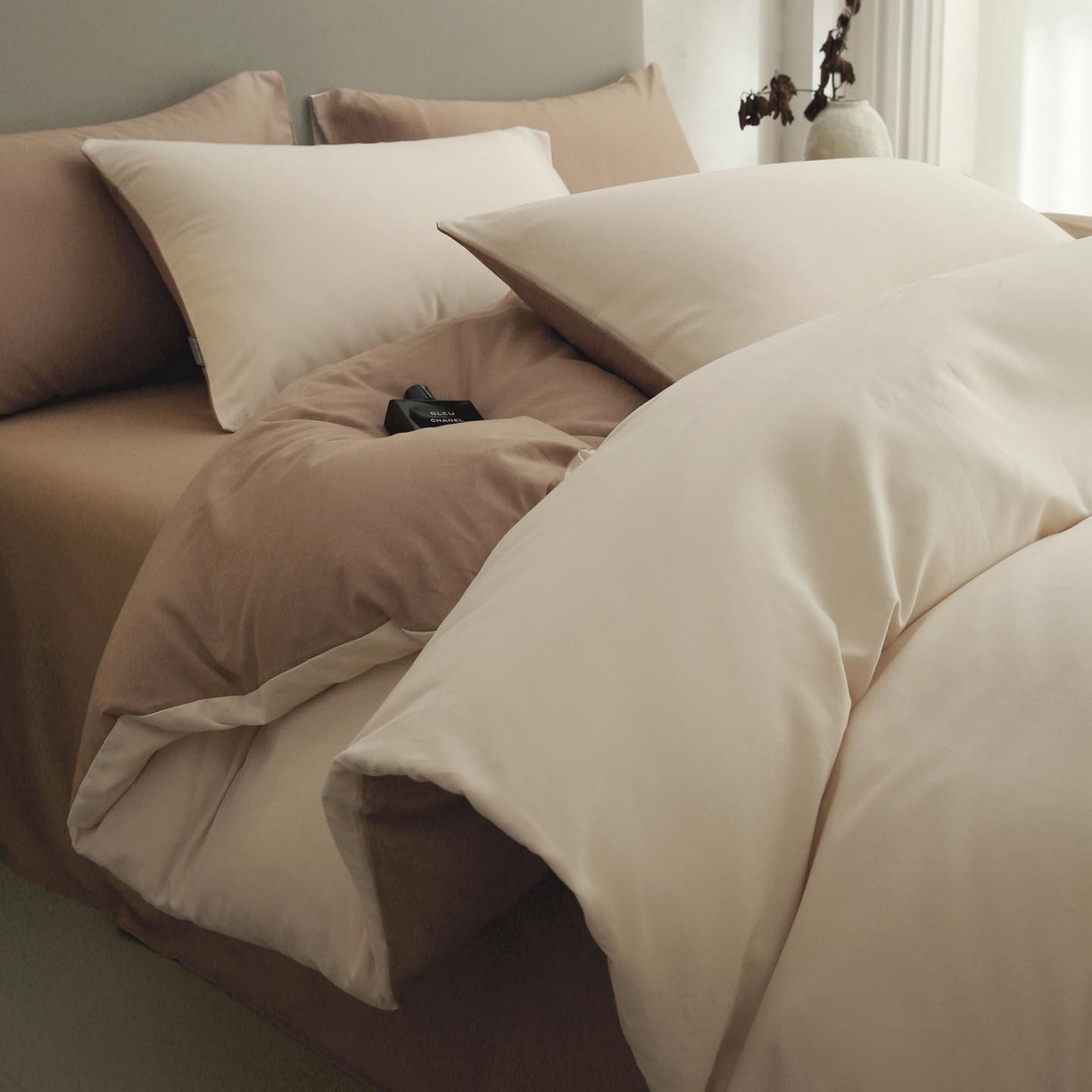 - 2025新款纯色双拼100%棉磨毛全棉纯棉四件套